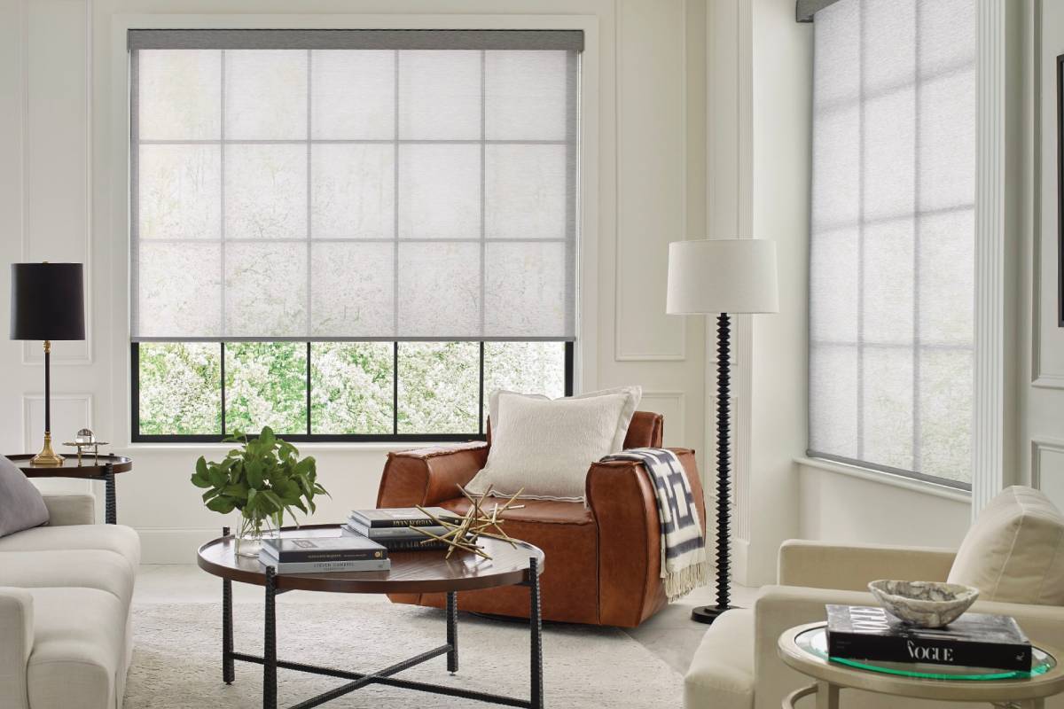 Hunter Douglas Designer Roller Shades are crafted from a continuous single piece of fabric that rolls up neatly around a headrail when raised. The collection includes hundreds of fabrics ranging from sheer to opaque, with patterns, textures, and solid colors all available. That range of opacity is what makes roller shades so versatile: a sheer fabric diffuses sunlight and softens glare, a light-filtering option provides daytime privacy while still letting natural light through, and a room-darkening fabric blocks most incoming light for bedrooms, nurseries, and media rooms.